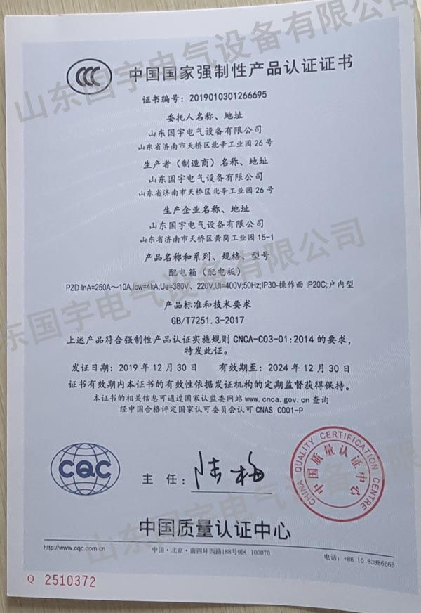 山東國宇電氣設備有限公司是專業(yè)的濟南配電箱定制生產(chǎn)加工廠家,專業(yè)生產(chǎn)各種配電箱、配電柜、動力箱、戶外箱、控制箱等成套電氣設備,公司生產(chǎn)的生產(chǎn)高低壓成套、不銹鋼配電箱和鐵制配電箱、PZ30系列、PZ40系列、電表箱、動力箱、動力柜、多媒體箱、基業(yè)箱、電視電話箱、光纖入戶箱等配電產(chǎn)品,均已通過了國家強制性CCC認證。國宇電氣配電箱柜系列產(chǎn)品遍布國內(nèi)外,安全、可靠地運行于電站、電廠、軌道交通、基礎設施、商業(yè)、住宅、醫(yī)院、學校、機場、港口和工礦企業(yè),受到眾多新老客戶的一致好評。